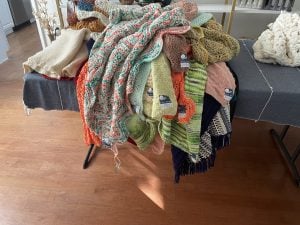 60 blankets, 10 hats, 7 stuffed animals, 4 bags, 2 scarves, and counting!