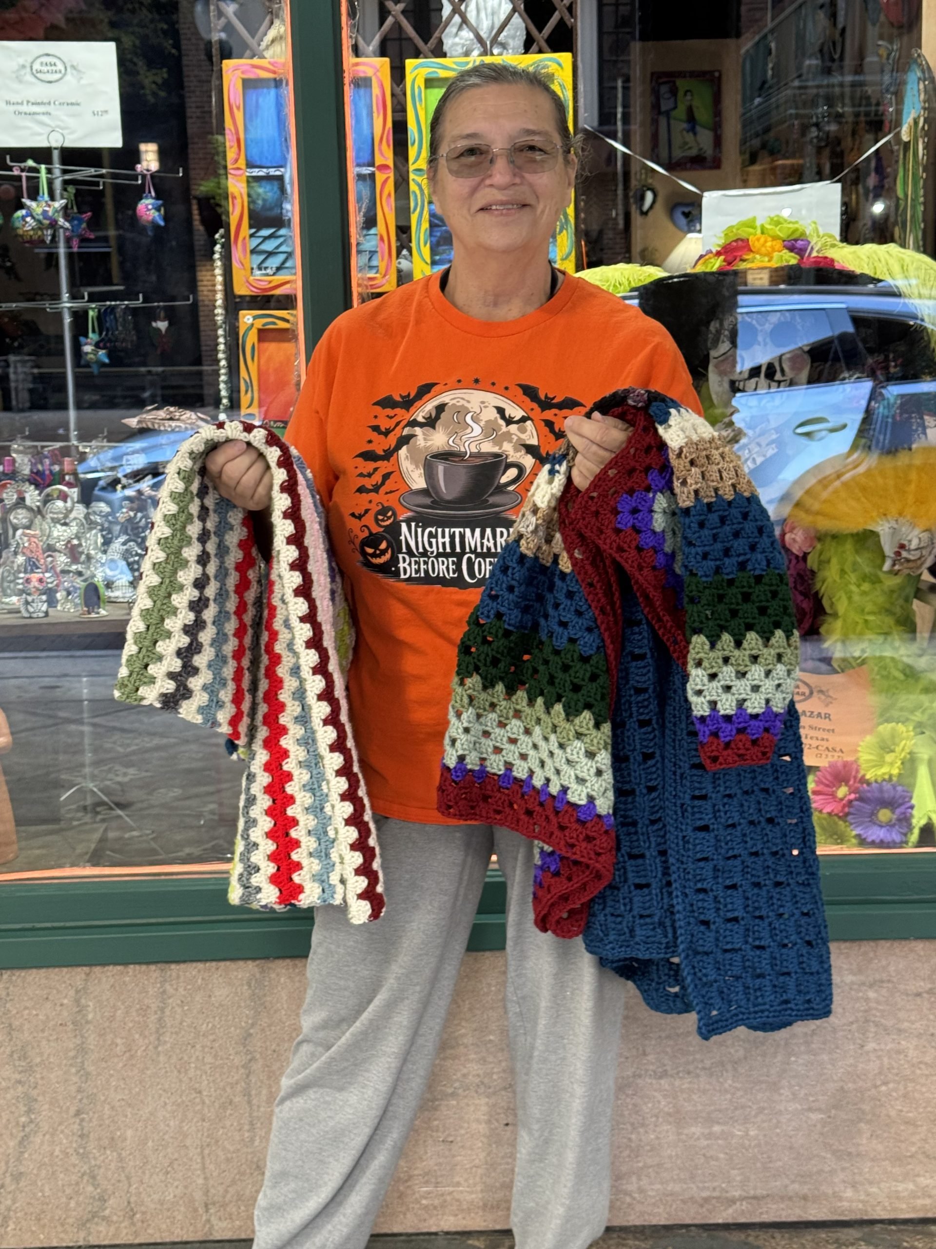 Saturday, March 15, 2025 – Elly Fields of San Antonio, TX recently donated a collection of gorgeous handmade crochet blankets. Thank you, Elly, for your generosity and for bringing warmth to the lives of those who need it most. Your contribution to Binky Patrol is a testament to the goodness in our communities and the incredible impact that one person can make.