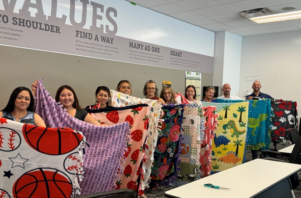 The blankets have to be made right so they’re safe for kids and last through the tough stuff. But we have simple instructions. If you can tie your shoes, you can make our blankets.